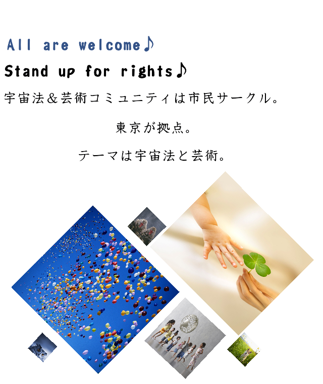 宇宙法&芸術コミュニティは、市民のサークルです。サークルの拠点は東京です。サークル活動の内容と目的は、宇宙法と芸術を融合した作品等を通じて、宇宙法と芸術のコミュニティを広げることです。